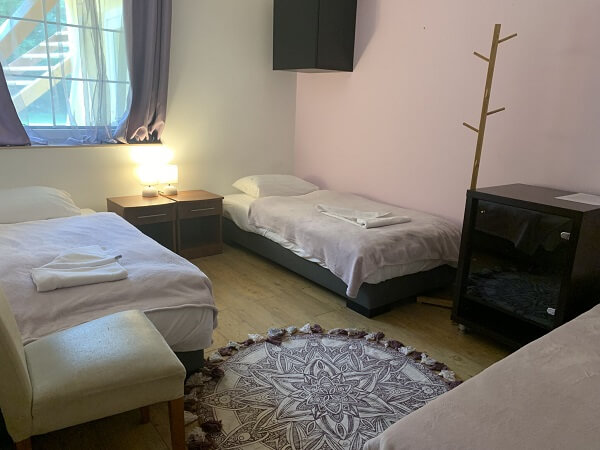 Kényelmes matracokon, hozott hálózsákkal vagy ágyneműhuzattal (paplant és párnát adunk)